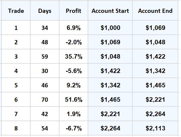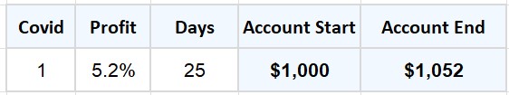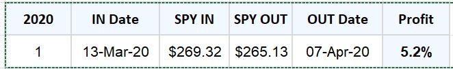 The 2020 COVID bear market was unusually brief and sharp, with market conditions changing rapidly over a matter of weeks. The table below shows the ITM trade generated during this period when qualifying conditions were met.