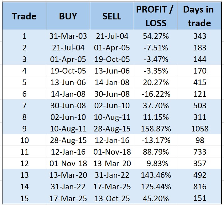 These are the exact results generated by ITM rules on SPYG from 2000 to 2025.
