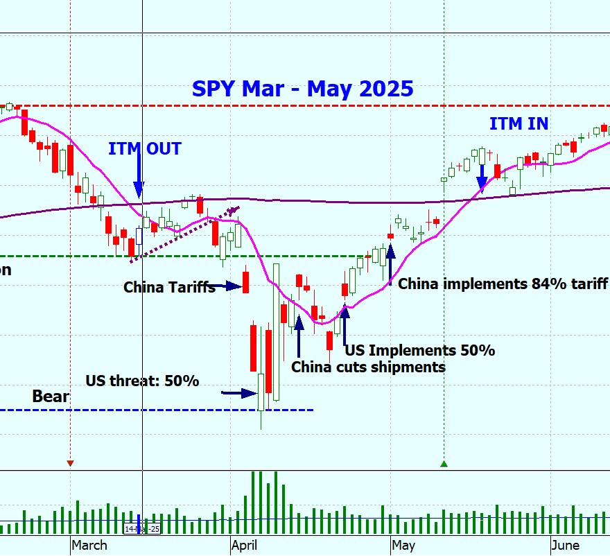 Could there be worse timing? The SPY golden cross has been confirmed, and that is our IN signal. Yes, we will be buying in at a higher price than we sold. Not ideal – the ITM OUT signal gets us out early if things deteriorate. But not all dips become corrections, and not all corrections become bears.