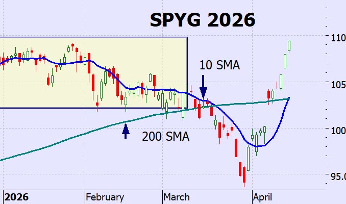 The SMA 100 closed at $609.98 on April 15th. So if the SMA 100 remained about the same, wouldn’t the QQQ ITM IN signal be confirmed when the SMA 9 – SMA 10 >= 1.5% = approx $9.15 ?