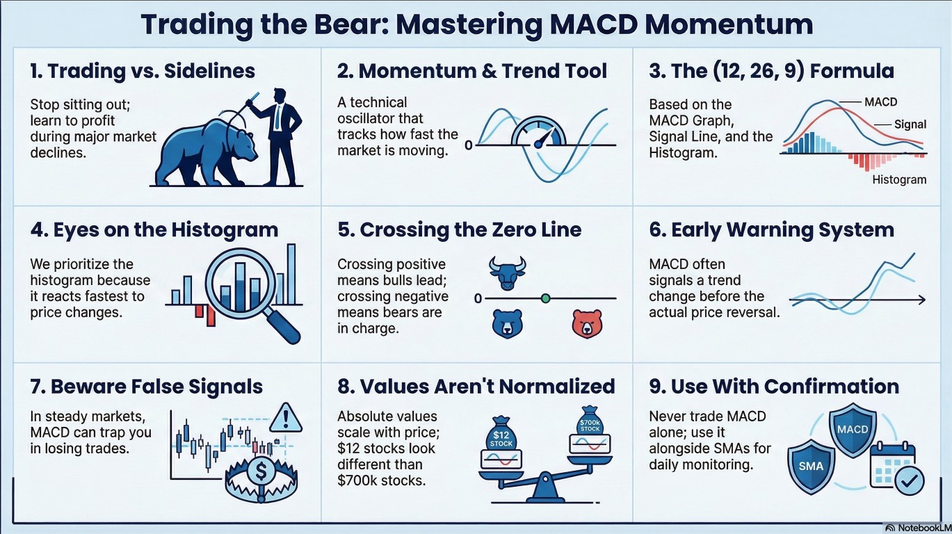 MACD (Moving Average Convergence Divergence): An oscillator we use alongside our trusty simple moving averages to trade the bear. It helps measure momentum and exactly how fast a market is moving.