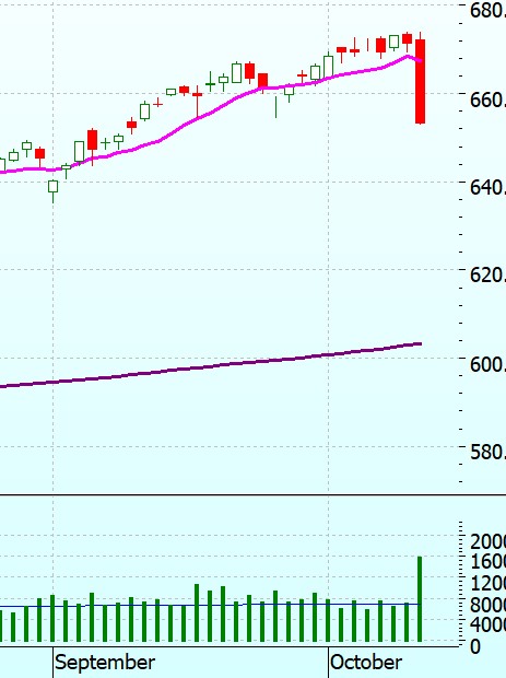 Not much to say – we’ve already seen it!  But back to where we were in mid-September. I suspect that the drop was made worse by being on a Friday. And it didn’t drop right away. I was watching the market for an hour or two, everything looked normal, so I went to bed. And woke the next morning to a very nasty surprise!!
